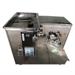 本机由出条和制丸两部分组成,箱式结构,纵向出条,构造简单,操作容易,维修方便。投料口大,压板翻动压料,在螺旋推进器的挤压下,制出直径相同药条,有辅助揉药团功能,揉出的药团有可塑性,料斗以翻板轴为界,分上下两开,翻料板可取出,从而达到清洗无死角,方便。一次岀条二根,增加二倍效率,可更换不同滚轴的直径,从而可以达到制造各种药丸的大小。点滴药条,制丸刀外侧装有毛刷,没有粘刀现象,装在制丸机构的方箱上,通过球阀调节大小。